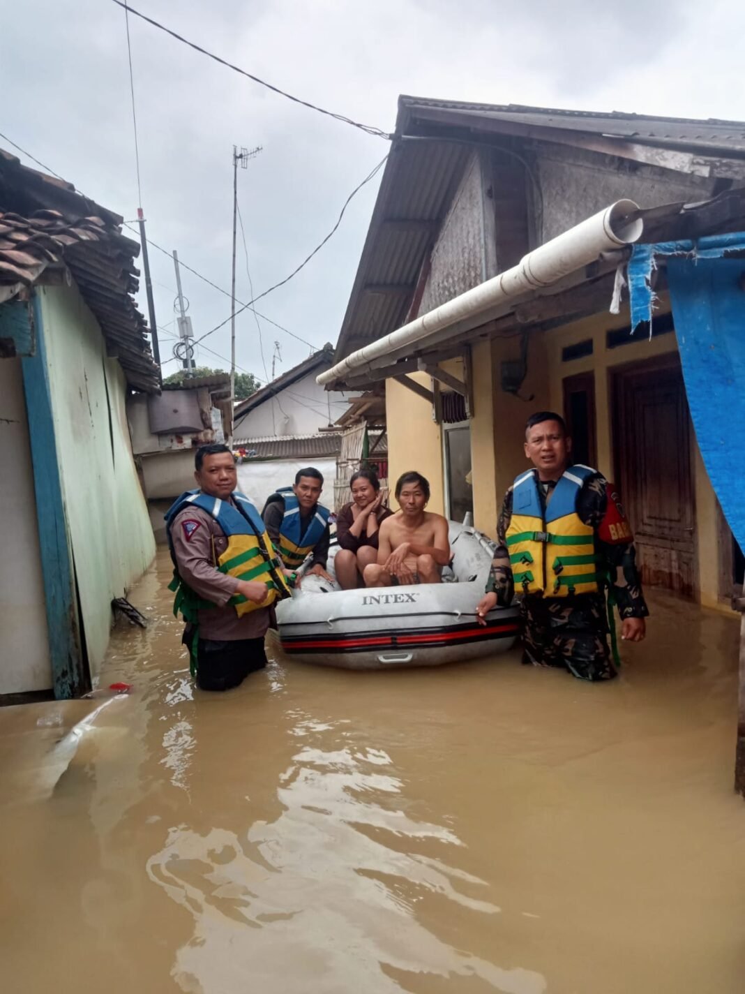 Bhabinkamtibmas dan Babinsa Evakuasi Warga Terdampak Banjir di Tanjung Mekar Karawang Barat