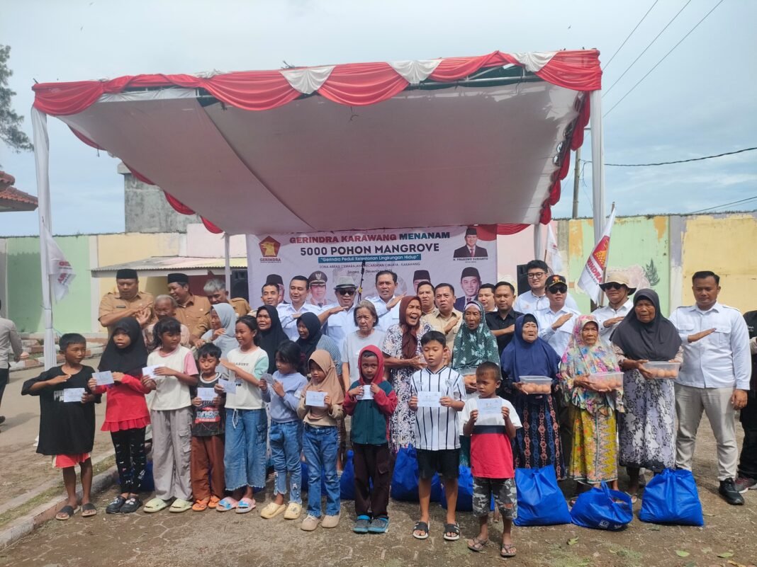 DPC Gerindra Karawang Tanam 5.000 Mangrove di Pesisir Cibuaya, Bupati Aep Syaepuloh Hadir Sekaligus Salurkan Bansos