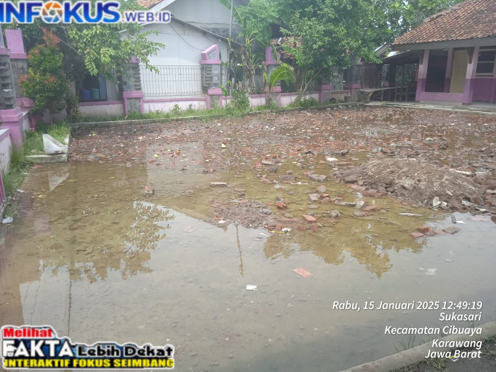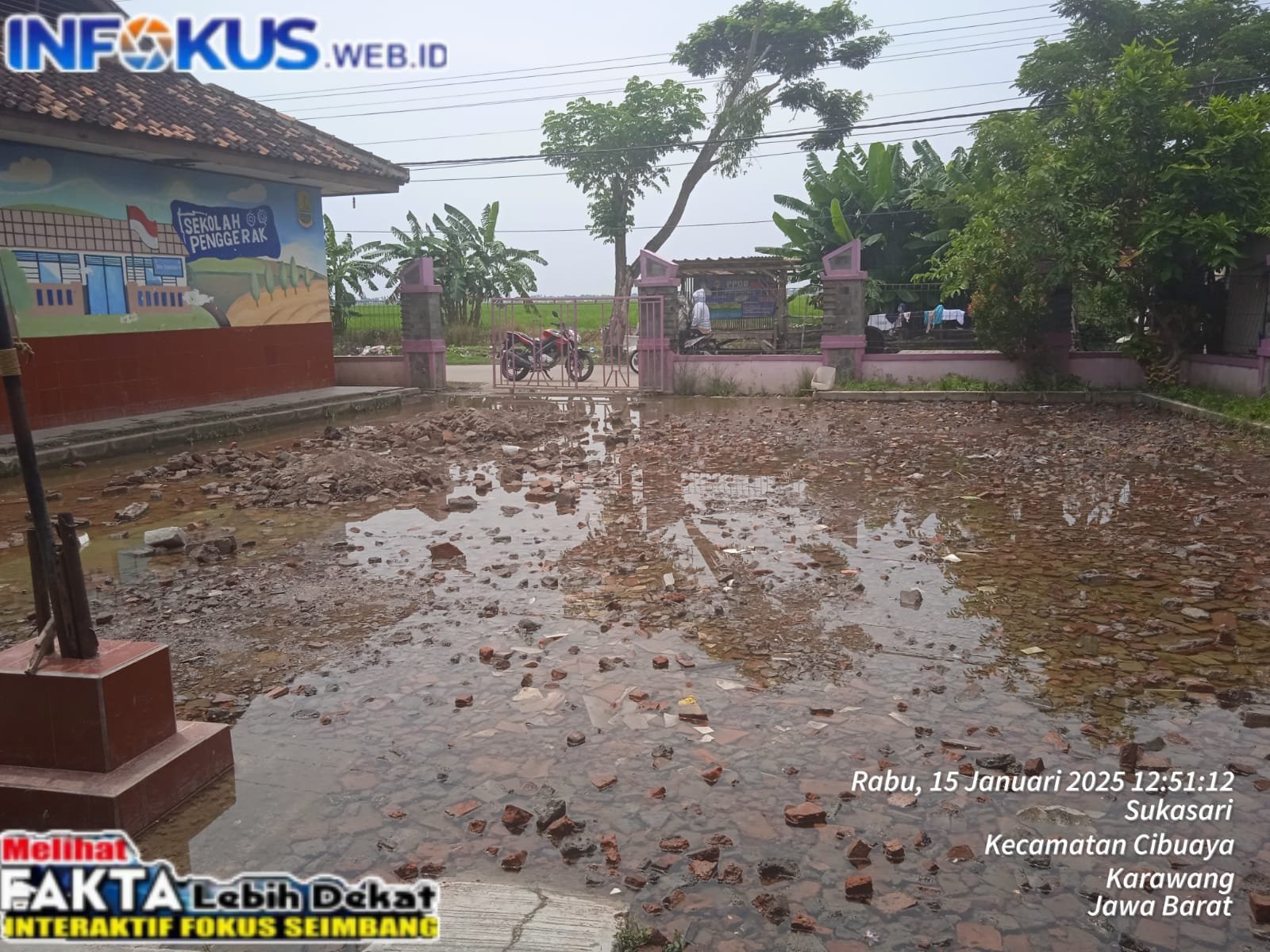 Hasil dari pantauan awak media online infokus.click/ rabu (15/01/2024) di lokasi, kondisi sekolah dasar negeri Sukasari 1 tergenang air dan hamparan puing puing.