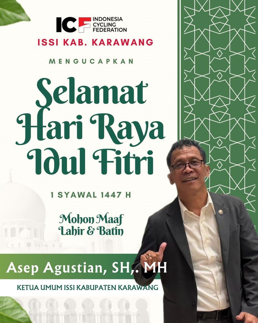 KARAWANG | INFOKUS.CLICK – Ketua Umum Ikatan Sport Sepeda Indonesia (ISSI) Kabupaten Karawang, Asep Agustian, menyampaikan ucapan Selamat Hari Raya Idul Fitri 1447 Hijriah kepada seluruh masyarakat Karawang.