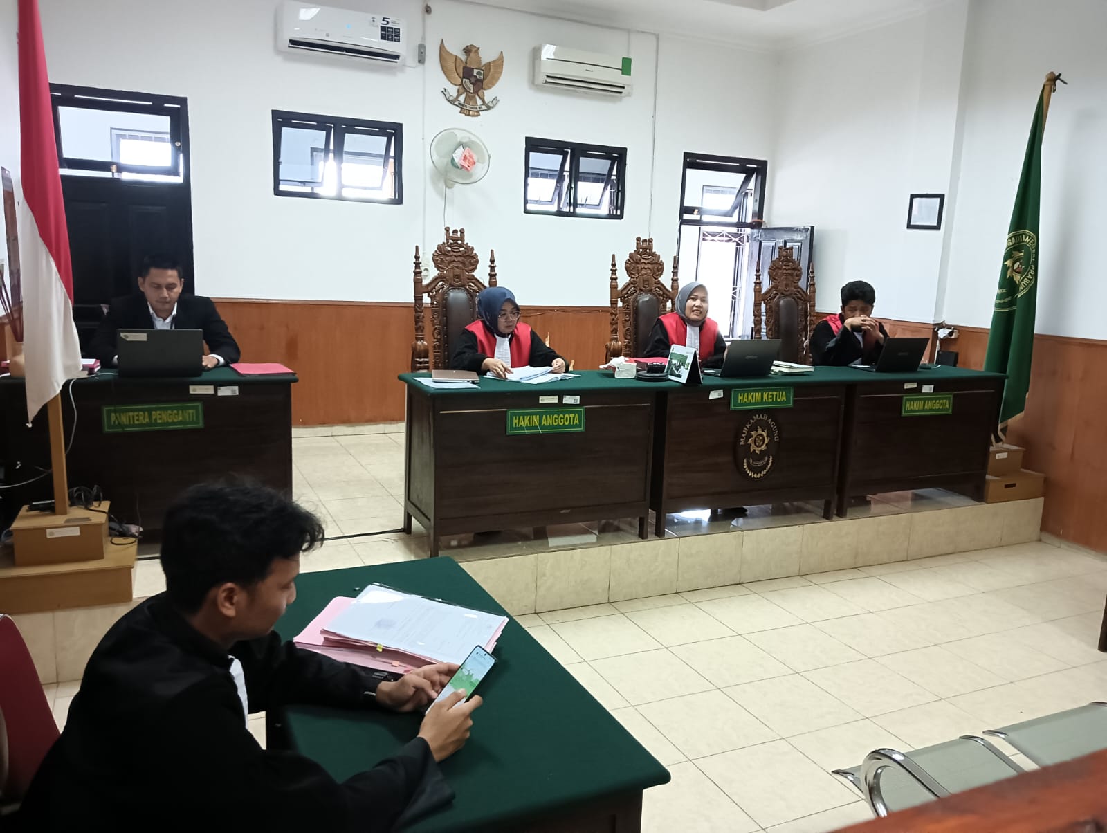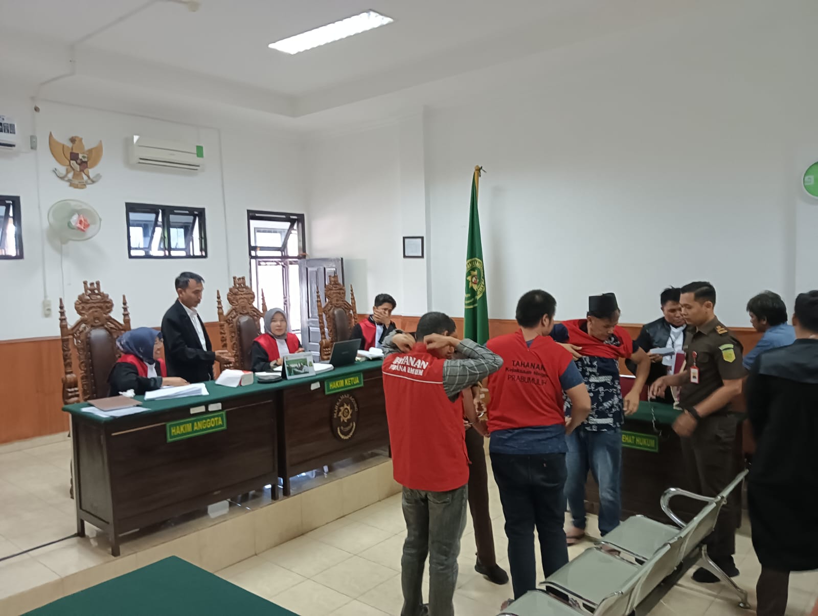 Sidang Perkara Kasus dugaan Pemerasan tersebut dipimpin langsung oleh Ketua Majelis Hakim Melina Safitri, SH, dengan Hakim Anggota, Winda Yuli Kurniawati SH MH, dan Norman Mahaputra SH, serta Panitera Pengganti Ahmad Tri Habibi SH MH, sedangkan Jaksa Penuntut Umumnya yakni Muhammad Ilham SH dan Efran SH. Sementara ketiga terdakwa langsung didampingi Kuasa Hukum NR Ichang Rahardian SH MH yang juga selaku Ketua Umum DPP IWO Indonesia guna melakukan Pembelaan terhadap ketiga terdakwa.