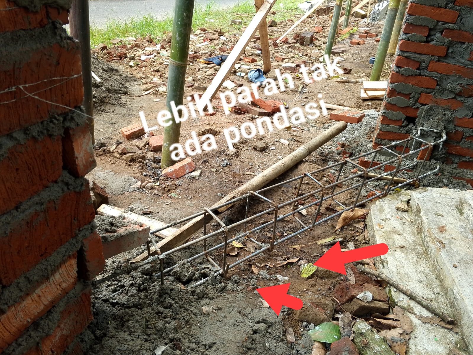 Di Area lokasi saat di tanya terkait pondasi kenapa pemasangan Slop kolom Besi Numpang di Pondasi Lama tidak Pasang pondasi baru mirip pekerjaan Rehab ?.dengan Nada Miris jawab pekerja inisial (AW) mengikuti instruksi dari pelaksana proyek.
