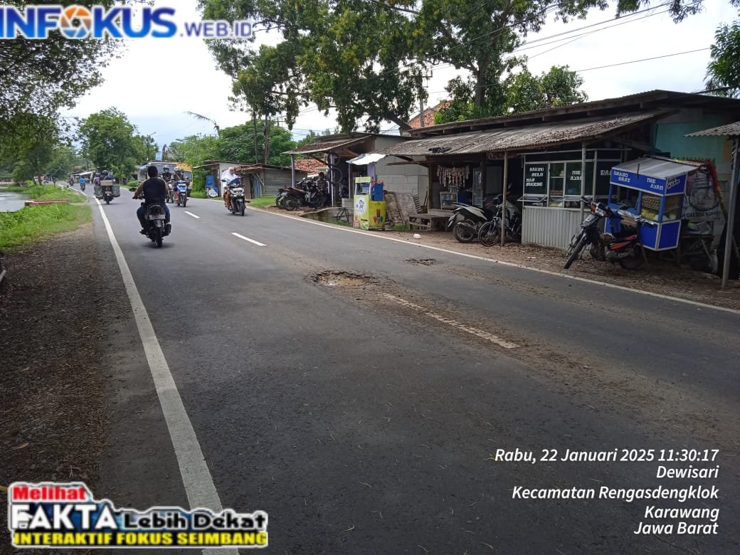Hasil pantauan awak media online infokus.click/, Rabu (22/01/2025) Jalan Provinsi Tanjung Pura Rengasdengklok, Rengasdengklok Arah Batujaya. Jalan tersebut sudah nampak berlubang berlubang, terlihat di beberapa titik lokasi. padahal jalan provinsi tersebut belum lama di perbaiki. adanya jalan berlubang, di khawatirkan bisa mengakibatkan terjadinya kecelakaan bagi warga masyarakat para pengguna jalan dalam berkendara.